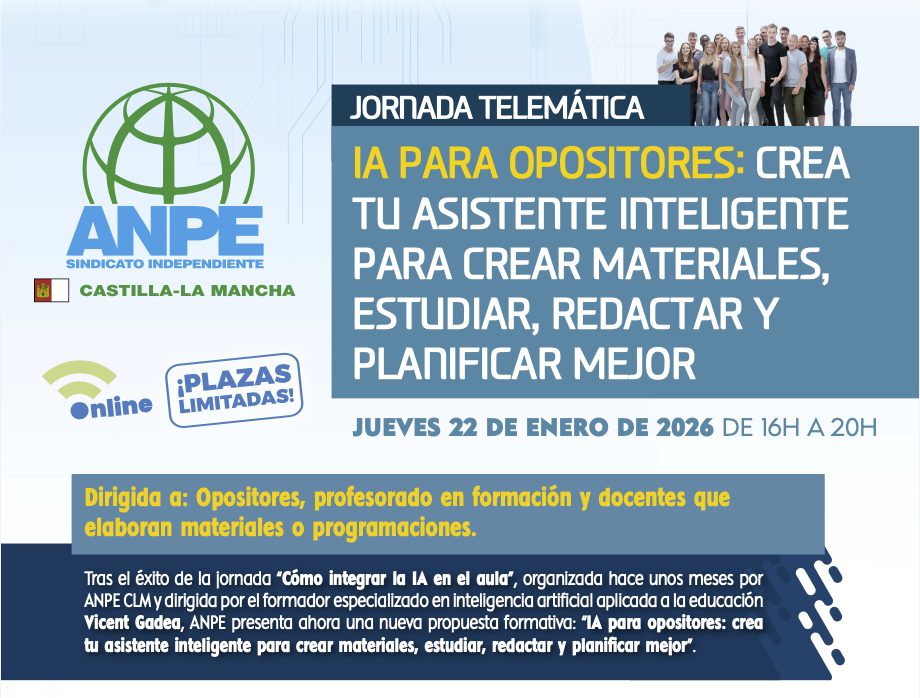 Los asistentes finalizarán la jornada con su propio agente o asistente inteligente configurado desde cero, capaz de comprender su temario, sus rutinas de estudio y su estilo de redacción. Además, contarán con una metodología clara para seguir desarrollando herramientas de IA que les ayuden a estudiar, planificar y crear materiales de forma más eficiente y con mayor coherencia pedagógica.