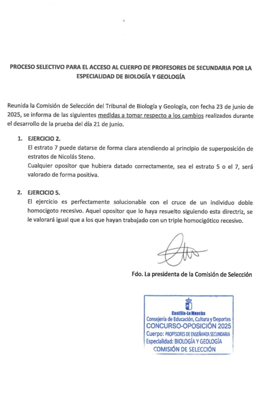 [25 -06-2025]Comunicado Comisión Selección Especialidad Biologia Oposiciones CLM 2025